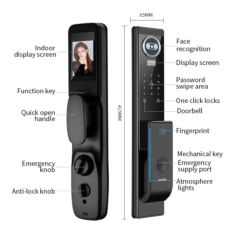 Equipped with an indoor high-definition display, the lock has a high-strength zinc alloy body (anti-prying, anti-rust) and low-power design (12+ months battery life with low-power alarm). Its simple and elegant appearance fits various decoration styles.